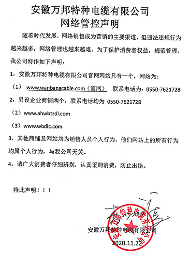 鄭重聲明:安徽萬邦特種電纜有限公司官方網站為:www_wanbangcable_com.zourtour.cn,除此之外無任何子網站或合作網站,其余均為假冒偽劣。電話:0550-7621728 13485756353 地 址:安徽省天長市滁州高新技術產業開發(fā)區經四路29號